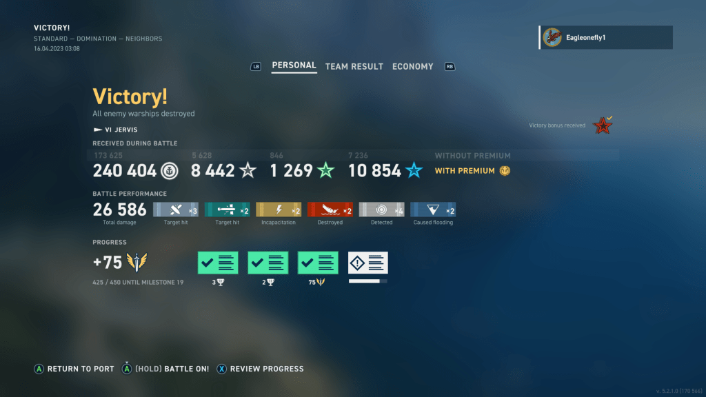 A victory and in the top three in battle performance in a tier VI Jervis.